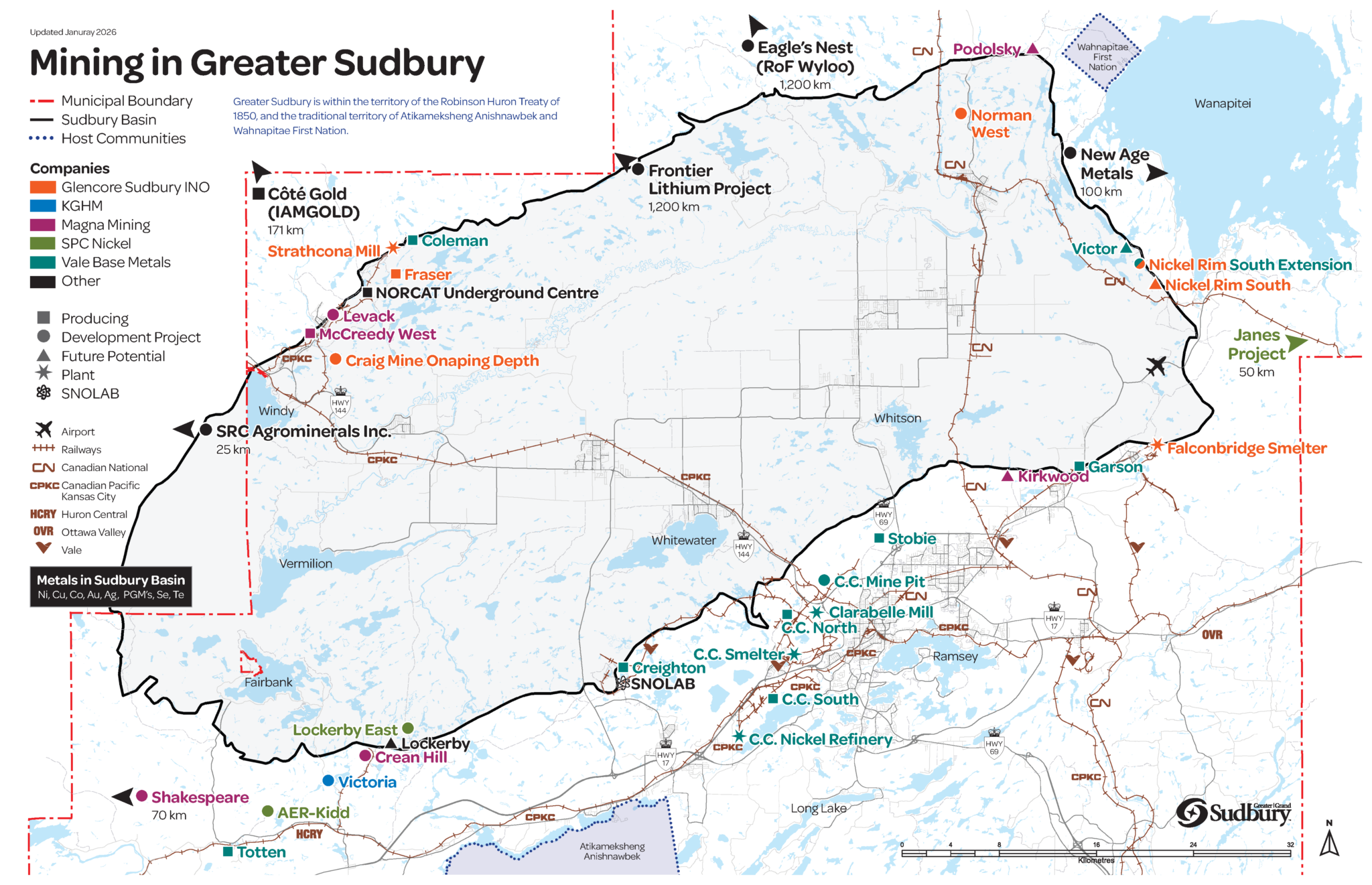 Ang Greater Sudbury mao ang pinuy-anan sa pinakadako nga integrated mining complex sa kalibutan. Kini nahimutang sa usa ka bantog nga geological nga bahin nga adunay usa sa pinakadako nga konsentrasyon sa nickel-copper sulphides sa planeta.