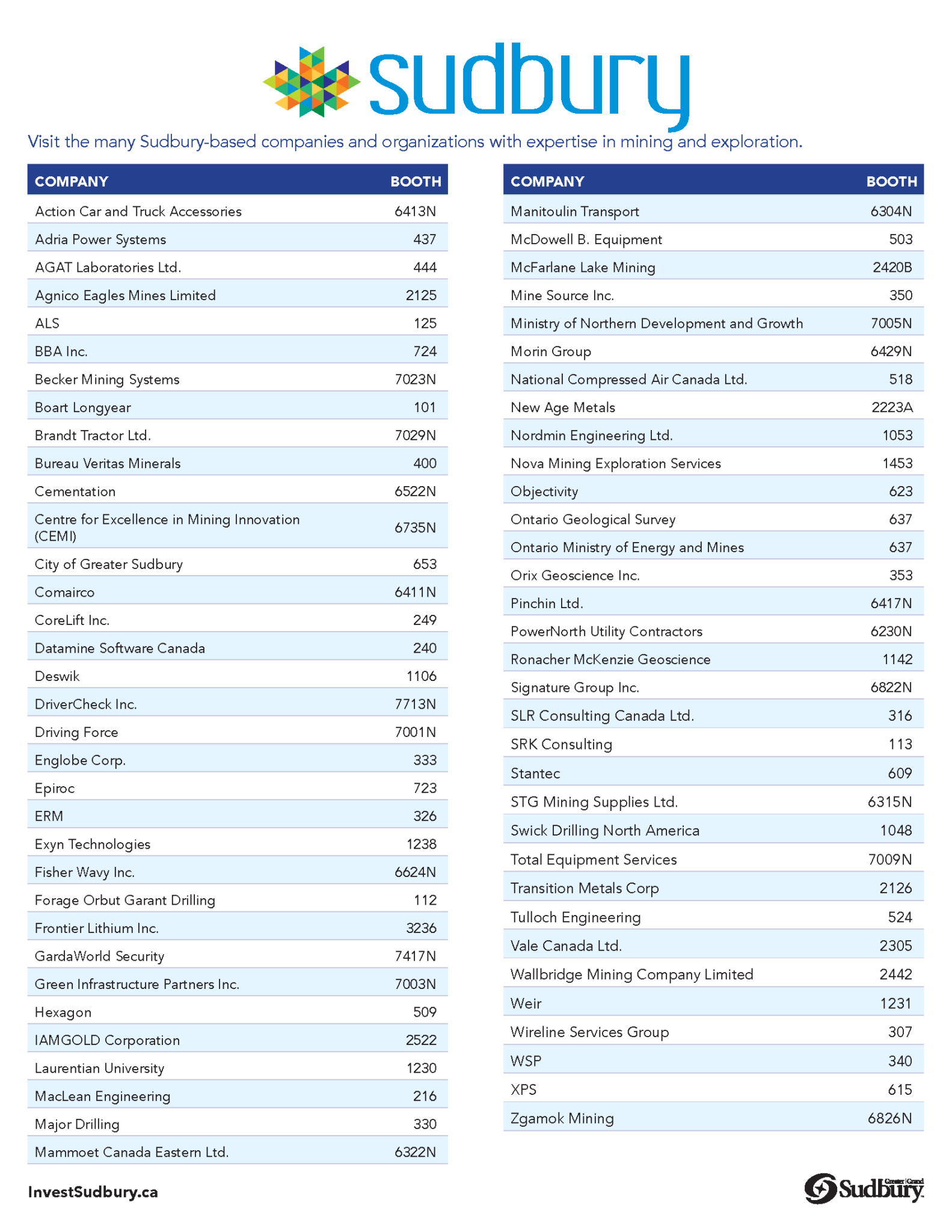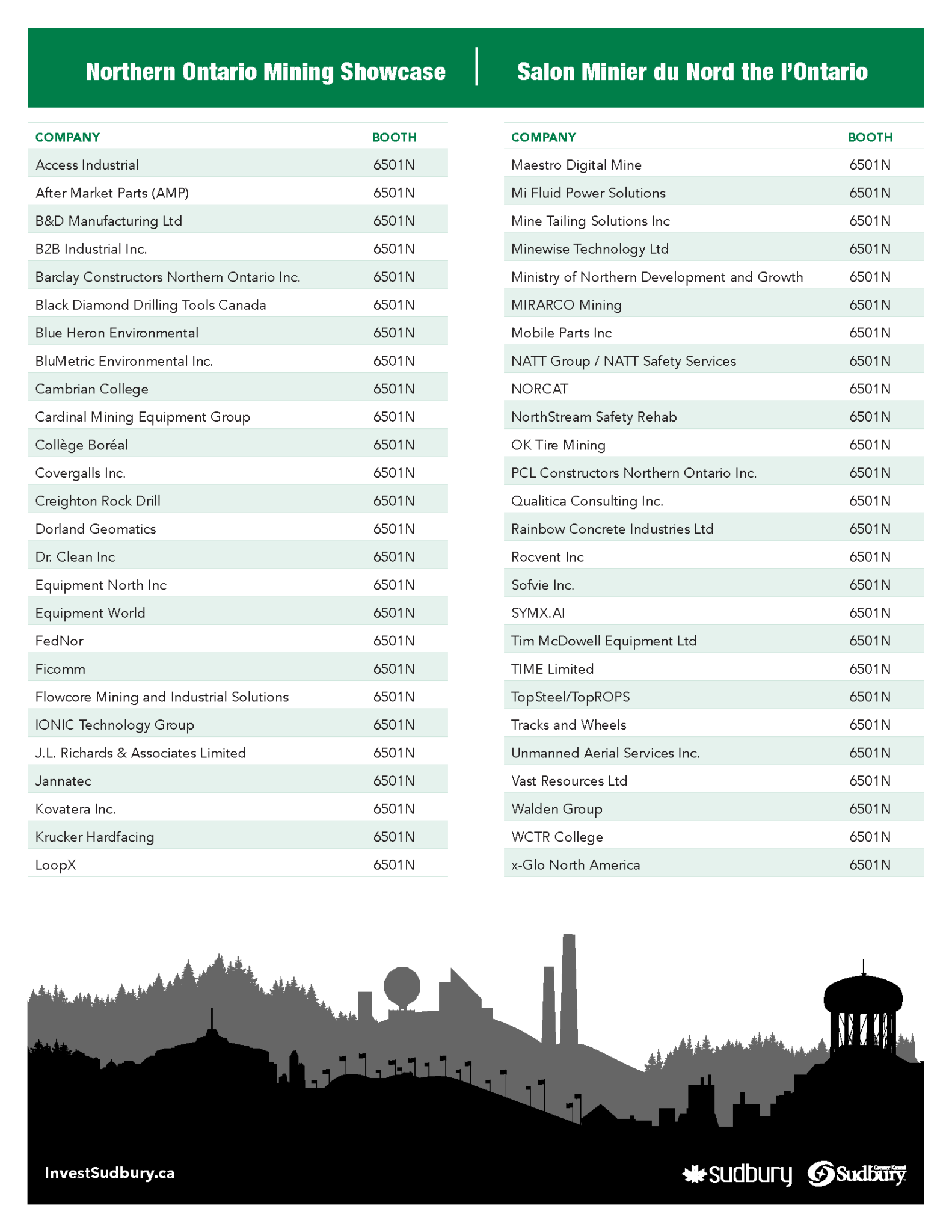 A continuación, se muestran las empresas de Sudbury que asistieron a la PDAC este año. ¡Esperamos con ansias la PDAC 2027!