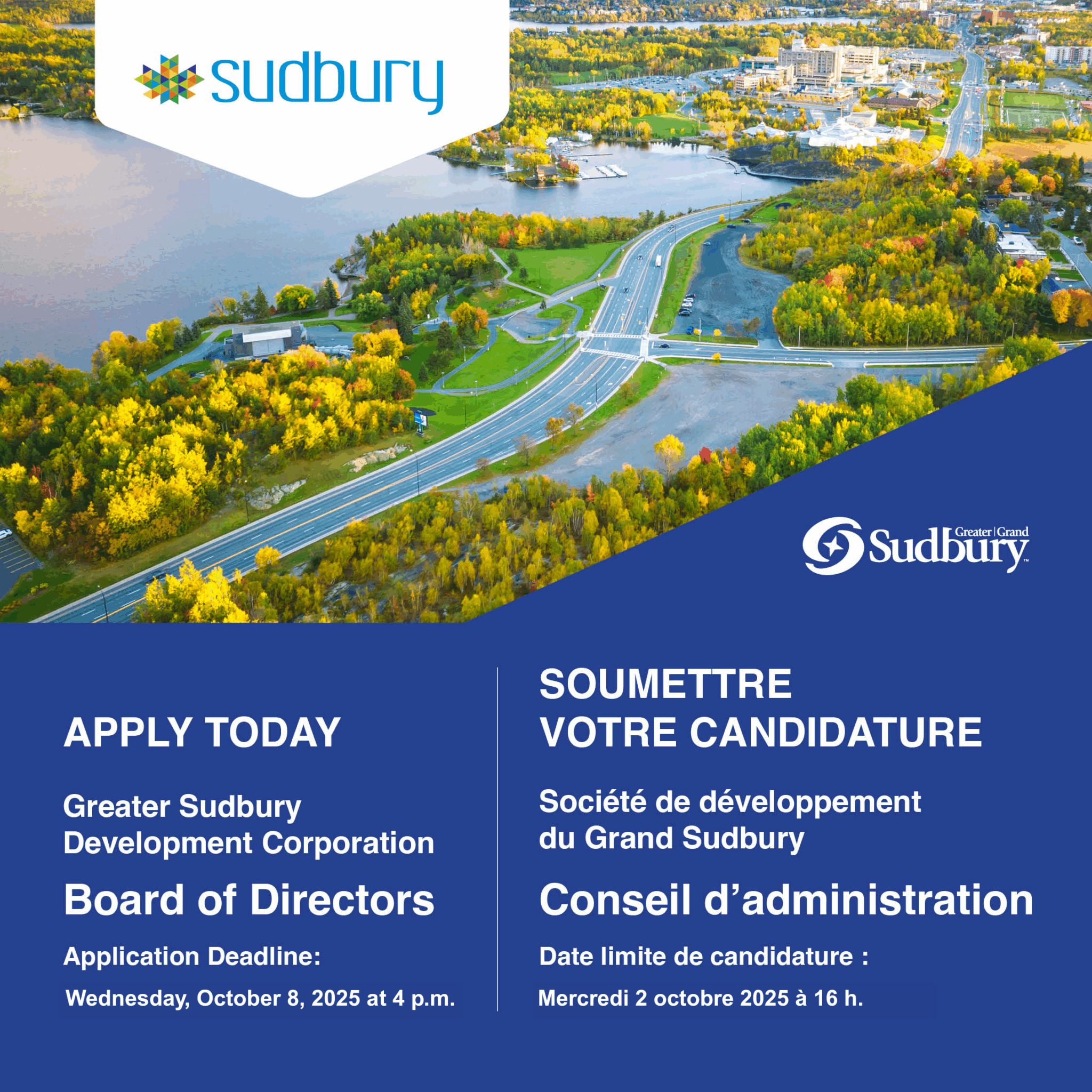 The Greater Sudbury Development Corporation (GSDC), an 18-member volunteer board of directors focused on economic development for the City of Greater Sudbury, is seeking engaged residents for appointment to its 2025–28 Board of Directors.